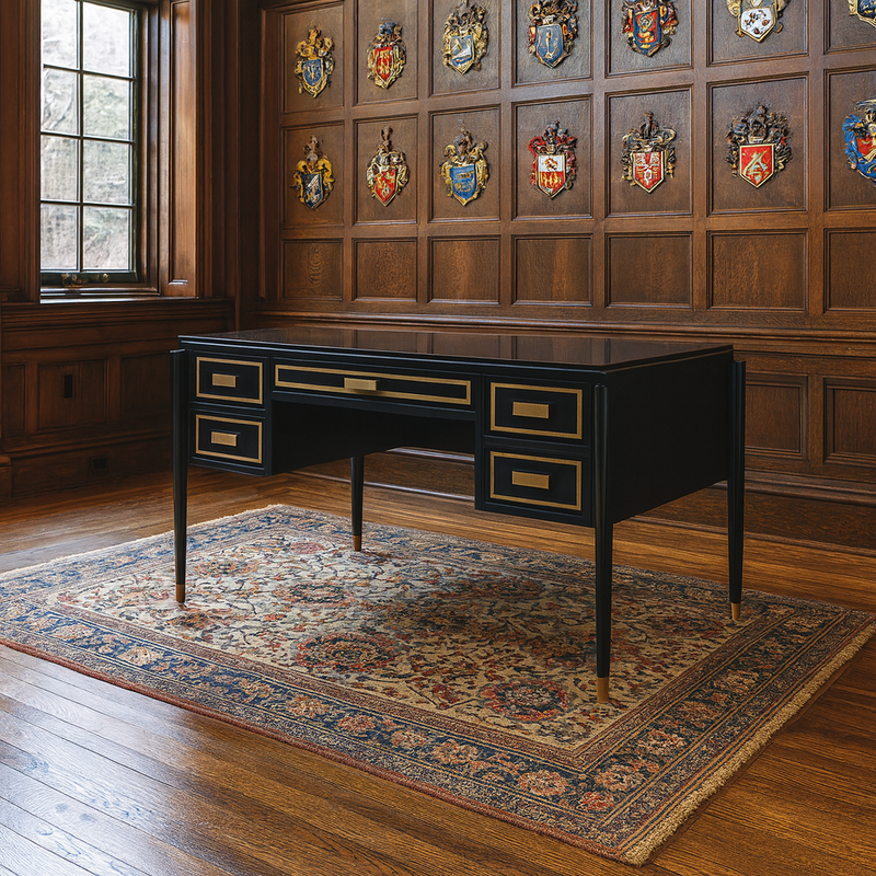 A classic modern design the Anne desk features solid brass inlays and details, solid beech and elegant high gloss laquering.